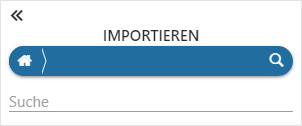 Mit Hilfe des Lupen-Symbols wird der Suchbereich geöffnet. Hier kann durch Eingabe eines Suchbegriffs nach noch nicht importierten Datenquellen gesucht werden, wobei die Suche in Form einer Volltextsuche erfolgt.