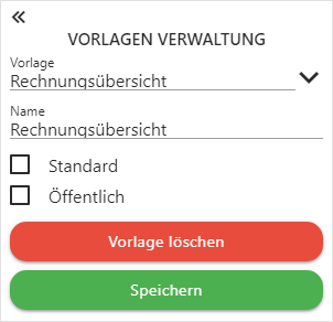 Durch Anwahl des Buttons "Vorlage löschen" wird die ausgewählte Vorlage gelöscht.