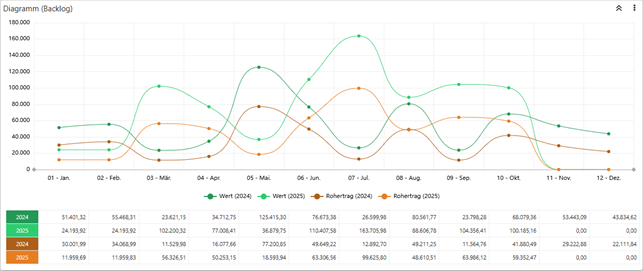 Durch Aktivierung dieser Option wird unterhalb des Diagramms eine Tabelle mit den Daten des Diagramms angezeigt.