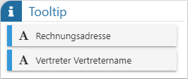 In dieser Tabelle werden alle Felder der Datenquelle dargestellt, welche per Drag & Drop in die Tabelle "ToolTip" übergeben werden können. Der Power Report unterscheidet hierbei nach den folgenden Datentypen: