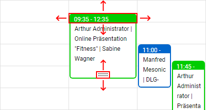 Handelt es sich bei der Ausgabe um einen WinLine Kalender, so können abhängig vom Listentyp der WinLine LIST-Liste die Einträge im Kalender per Drag & Drop verschoben oder vergrößert bzw. verkleinert werden (nähere Informationen zu den einzelnen WinLine LIST-Typen entnehmen bitte dem Kapitel WinLine Kalender).
