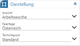 An dieser Stelle kann entschieden werden, in welcher Ansicht der Kalender dargestellt werden soll. Hierfür stehen folgende Optionen zur Verfügung: