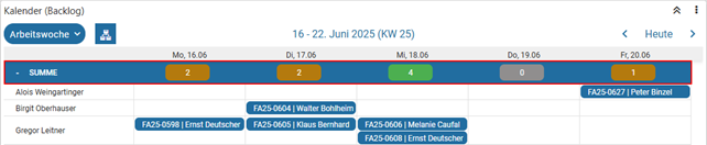 Durch Aktivierung dieser Option wird in der Zeile der Hauptgruppierung eine Summe über die nachfolgenden Einträge angezeigt. Die Summierung ist hierbei abhängig von der gewählten Ansicht, d.h. bei Ansicht "Tag" erfolgt eine Summierung pro Stunde, bei z.B. "Monat" eine Summierung pro Tag.