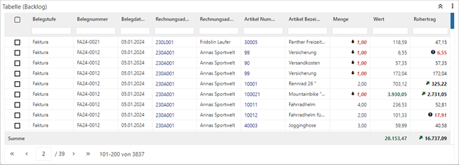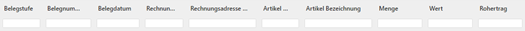 Die hier abgelegten Felder werden in der Tabelle dargestellt. Handelt es sich nicht um einen Power Report auf Grundlage einer WinLine LIST-Liste, so werden die Standardspalten wie folgt gebildet: