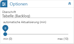 An dieser Stelle kann definiert werden, ob sich der Inhalt der Tabelle automatisch aktualisieren soll. Mit der Einstellung "0" findet keine Aktualisierung statt.