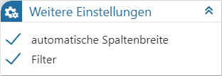 Durch den Schalter "Filter" kann definiert werden, ob die Filterzeile in der Tabelle zur Verfügung stehen soll.