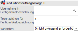 An dieser Stelle kann definiert werden, ob die Auswahl einer Variante bei der Anlage eines Produktionsauftrags (Öffnen der Stückliste in der Belegerfassung, Produktionsvorbereitung, Produktionsauftrag einlesen) zwingend erforderlich ist oder nicht.