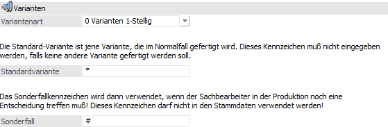 Mit Hilfe dieser Auswahlliste kann definiert werden, welche Art von Varianten in der WinLine PPS verwendet werden sollen. Folgende Auswahlen stehen zur Verfügung: