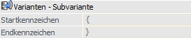 Wenn die Option "2 - Varianten 1-Stellig inkl. Subvarianten" gewählt ist, so können hier die Start- und Endkennzeichen für die Subvarianten hinterlegt werden. Durch diese Kennzeichen werden alle Varianten einer Stücklistenebene (Arbeitsschritt) zusammengefasst.