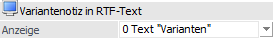 An dieser Stelle kann hinterlegt werden, wie die Variantennotiz in der Artikelnotiz der Belegerfassung (d.h. dem dortigen RTF-Text-Feld) dargestellt werden soll.