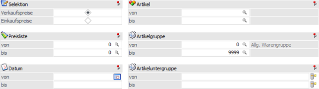 ü Artikelgruppe von / bis