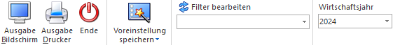 Über die Auswahlbox kann das Wirtschaftsjahr gewählt werden, für welches die Auswertung erfolgen soll. Damit können die Daten aus den Vorjahren angezeigt werden, ohne dass das Fenster geschlossen und ein manueller Wirtschaftsjahreswechsel vorgenommen werden muss.