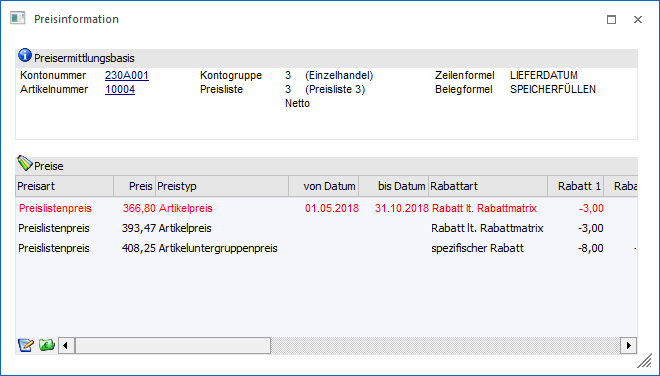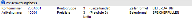In diesem Informationsbereich werden die Basisdaten der Preisfindung dargestellt. D.h. auf Grundlage dieser Daten wird von der WinLine eine Preisfindung durchgeführt.