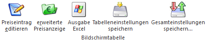 Durch Aktivieren dieses Buttons werden folgende Preiseinträge zusätzlich in der Tabelle aufgeführt:
