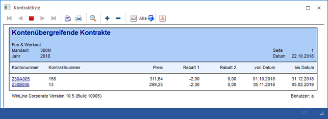 Durch Anwählen dieses Buttons wird eine Kontraktliste geöffnet, in welcher alle kontenübergreifenden Kontrakte zu diesem Artikel angezeigt werden, in denen das aktuelle Konto noch nicht enthalten ist.