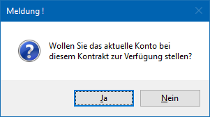 Wird in dem Formular eine Kontonummer angeklickt, so wird der zugehörige Kontrakt um das aktuelle Konto des Belegs ergänzt und der Kontraktpreis wird automatisch in die Belegerfassung übernommen. Zuvor muss aber die entsprechende Sicherheitsmeldung bestätigt werden: