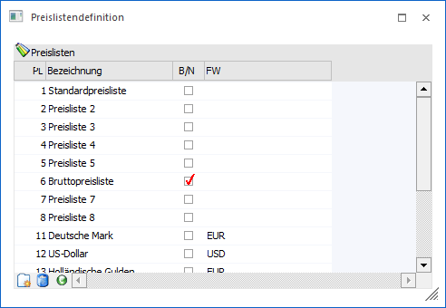 An dieser Stelle kann mit Hilfe einer Checkbox definiert werden, ob es sich um eine Netto oder Bruttopreisliste handelt.