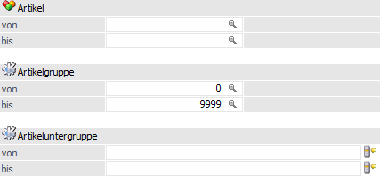 Ø Artikelgruppen von / bis