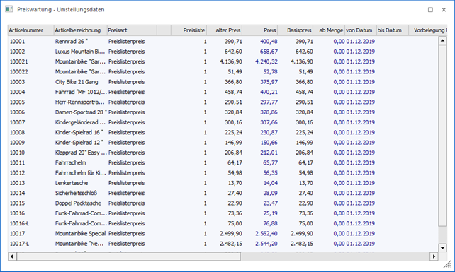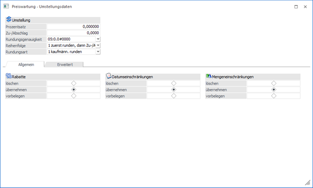 Die Art der Preisumstellung wird in der Preiswartung unter "Umstellung" definiert.