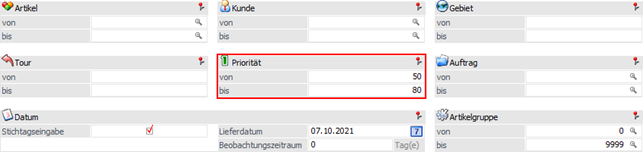 … steht ein 5-stelliges numerisches Prioritätsfeld zur Verfügung. Dieses wird bei der Erfassung eines Belegs automatisch vom Kundenstamm in den Belegkopf dupliziert und kann im Register "Zusatz" editiert werden. In dem Menüpunkt…