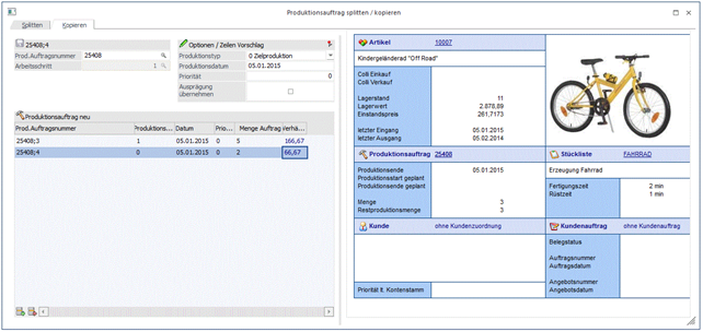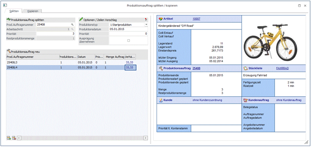 Produktionsauftrag splitten