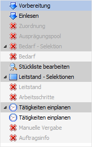 Im linken Teil des Fensters befindet sich die Navigation, in welcher alle Hauptbereiche der PPS zu finden sind. Die aktiven Einträge können direkt angewählt werden und bewirken einen Wechsel in den jeweiligen Programbereich.