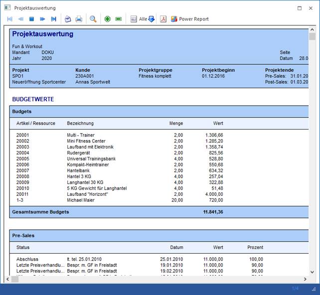 Die Projektauswertung wird über den Menüpunkt…