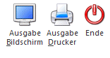 Die Ausgabe kann wahlweise am Drucker (bzw. Spooler) oder am Bildschirm erfolgen.