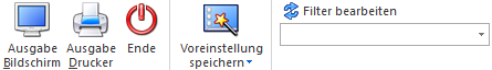 Mit Hilfe des Buttons "Ausgabe Bildschirm" oder der Taste F5 wird die Auswertung am Bildschirm ausgegeben.