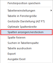 werden (rechte Maustaste - Funktion "Spalten anzeigen/verstecken").