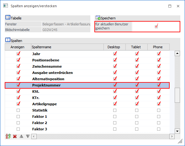 Standardmäßig wird die Projektnummer im Belegkopf hinterlegt. Es ist jedoch auch