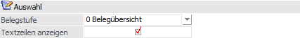Beim Drücken dieses Buttons wird je nach Fokussetzung der entsprechende Beleg angezeigt. Falls für eine Zeile mehrere Belege vorhanden sind, so kann der gewünschte Beleg aus dem Matchcode ausgewählt werden.