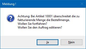 erfolgt zunächst eine Prüfung, ob mehr fakturiert werden soll, als bestellt