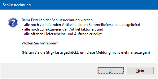 und für die noch zu fakturierenden Werte eine Schlussrechnung erstellt.