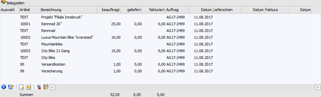 Tabelle "Belegzeilen" werden alle Artikel der einzelnen Belege aufgelistet.