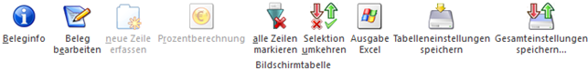 Tabelle "Belegzeilen" angezeigt. Zusätzlich gibt es eine Spalte "zu