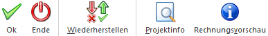 Mittels "Projektinfo"-Button kann die detaillierte Projektauswertung des aktuellen Projektes aufgerufen werden.