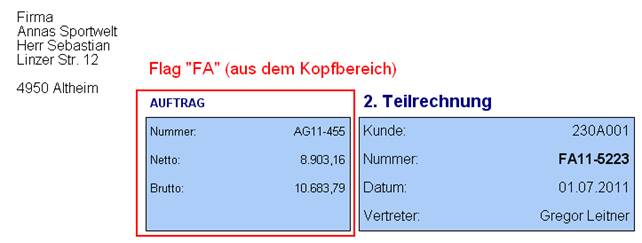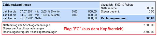 Über die Kombination mit dem Flag "A" können im Rechnungskopf weitere Informationen bereitgestellt werden.