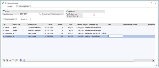Werden Istzeiten erfasst, können pro Zeile die folgenden Optionen gesetzt werden: