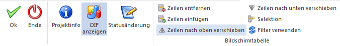 Mit Hilfe des Buttons wird das Basis OIF-Element für Projekte und für Artikel angezeigt. Die Aktivierung der Anzeige wird benutzerabhängig pro Mandant gespeichert.