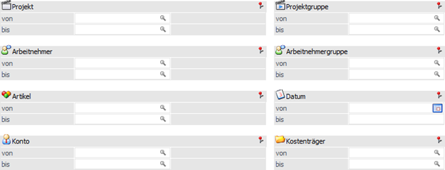 Die Projekterfassungsliste kann nach den folgenden Kriterien eingeschränkt werden: