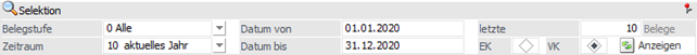 In diesem Bereich kann definiert werden, welche bzw. wie viele Belege dargestellt werden sollen. Die gewählten Einstellungen werden benutzerspezifisch gespeichert.