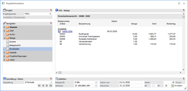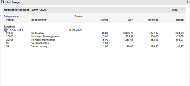 In der Ansicht "Einzelzeilen" werden die Belege mit allen dazugehörigen Einzelzeilen (Artikel) angezeigt.