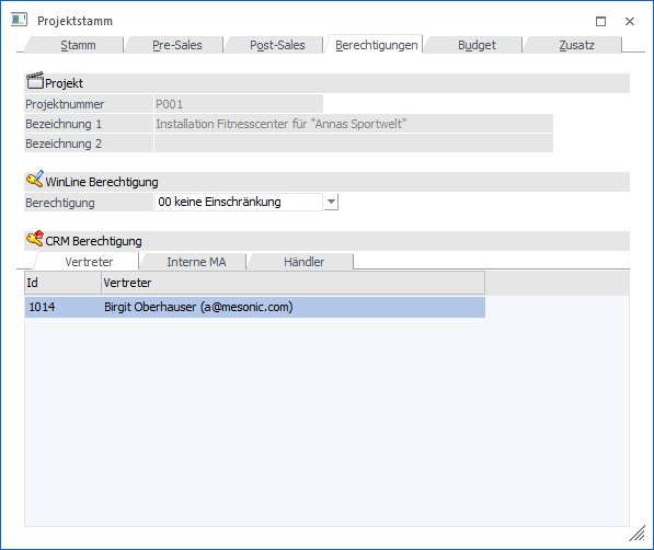 Für jedes Projekt kann ein Berechtigungsprofil vergeben werden. Wenn der Anwender ein Projekt aufruft, wird geprüft, ob der Anwender einer Benutzergruppe zugeordnet wurde, welche in dem jeweiligen Profil enthalten ist und ob somit eine Bearbeitung erlaubt wäre (nähere Informationen entnehmen Sie bitte dem WinLine ADMIN - Handbuch).