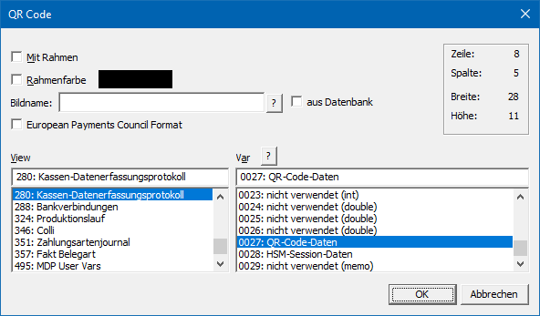 In der WinLine gibt es die Möglichkeit die Grafikdateien zentral in der SQL-Datenbank (Systemdatenbank) abzulegen (nähere Informationen dazu entnehmen Sie bitte dem WinLine START-Handbuch, Kapitel "Grafiken importieren"). Mit dieser Option wird festgelegt, dass die anzudruckende QR Code-Grafik eben aus dieser Datenbank gedruckt wird.