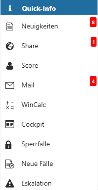 Die Quick-Info befindet sich im linken Bereich des Cockpits und weist auf ungelesene Objekte hin. Zusätzlich stehen diverse Cockpit-Funktionen zur Verfügung.