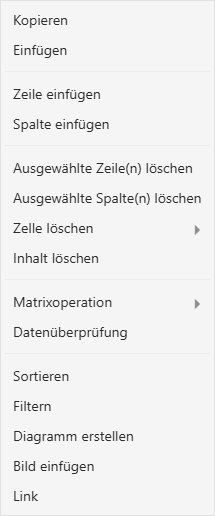 Durch Anwahl der rechten Maustaste im CalcSheet stehen folgenden Funktionen zur Verfügung: