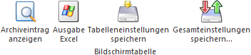 Im Gegensatz zu "Tabelleneinstellungen speichern" können mit "Gesamteinstellungen speichern" mehrere Tabellenaufbauten gespeichert und nach Wunsch geladen werden. Zusätzlich werden Sonderfunktionen der Tabelle (z.B. "Spalte gruppieren") ebenfalls bei der Speicherung bedacht.
