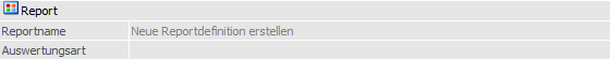 An dieser Stelle wird der Name des ausgewählten Reports angezeigt. Handelt es sich um eine Neuanlage einer Reportdefinition, so wird der Name "Neue Reportdefinition erstellen" ausgegeben.