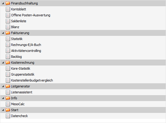 Hier wird die Art der Auswertung des neuen Reports dargestellt, d.h. ob es sich um eine Applikationsauswertung (z.B. Backlog), eine Listauswertung, eine MesoCalc-Ausgabe, den Datencheck oder einen Hintergrundprozess handelt.